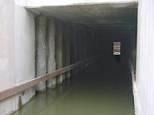 It was in 2001 that this Pennine waterway was restored, its restoration resulting in some of the most remarkable achievements ever attempted in the re-opening of a waterway, including moving an entire works and its contents, constructing a tunnel, then putting everything back, as seen in the two photographs. It even meant moving a bus station and a market, where the original canal had been buried.